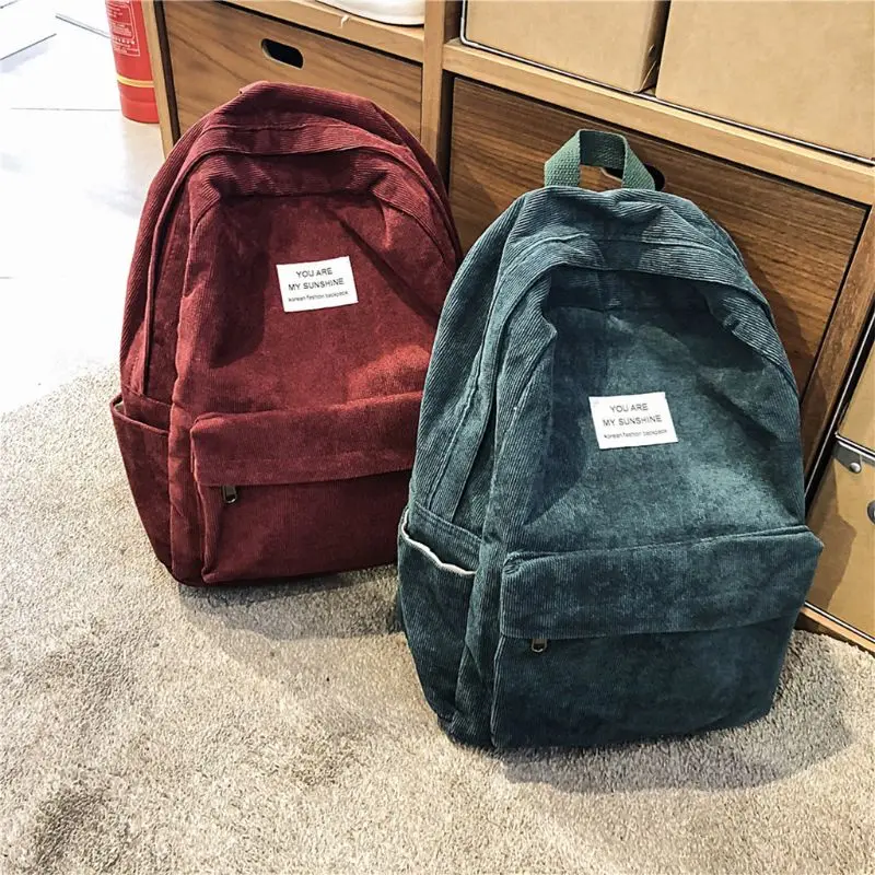 Fashion Women Corduroy Backpack Laptop School Bags Casual Lady Travel Shoulder Bag Daypacks Rucksac